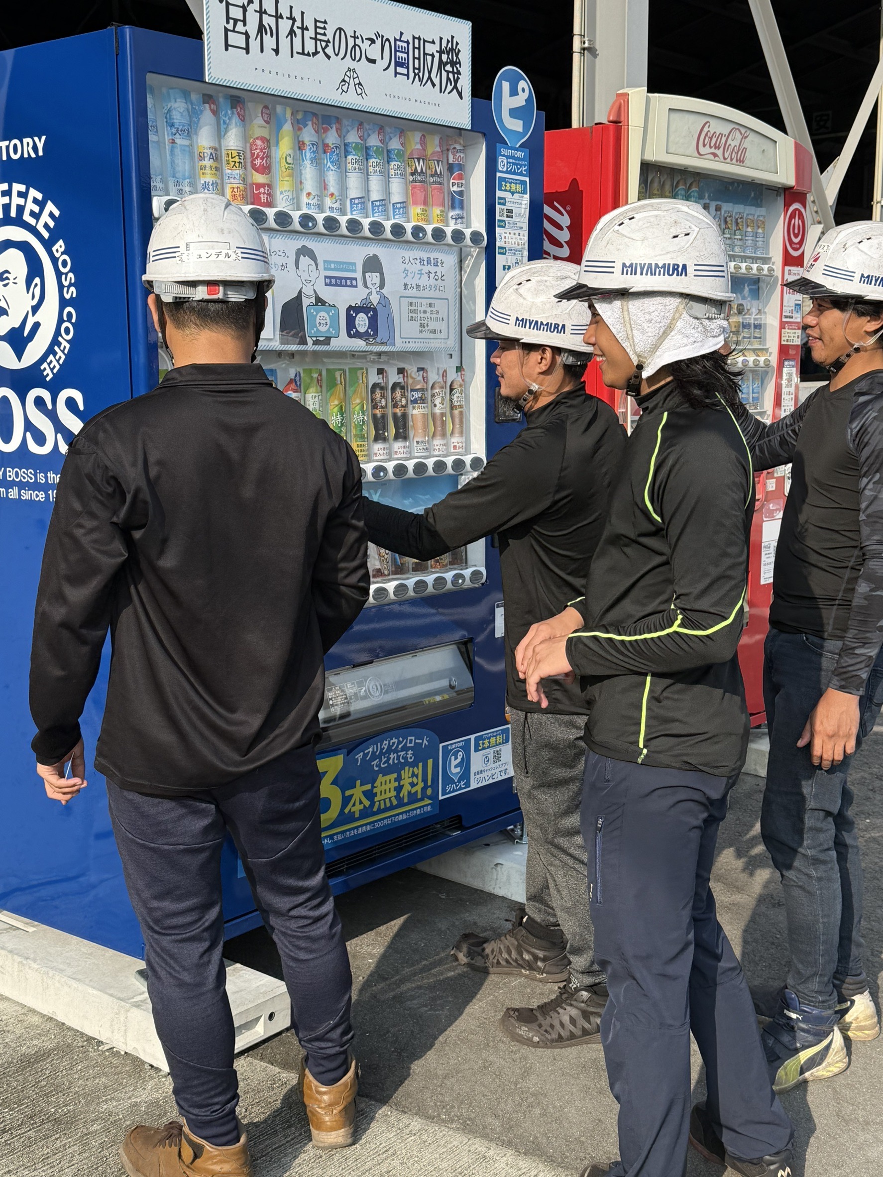 真っ先に取り掛かったのは、完全週休二日制や福利厚生の充実などを加速し、若者から魅力的と思われる職場に変革すること。最も稼働していたメンバーを出世させた為、現場が一時的に弱体化した時期もあったが、「これも経験。一度は失敗しても構わないから、誰が抜けても社員同士で補完し合える体制を作ろう」と辛抱強く継続。その結果、現在の確固たる社内体制の定着を実現させられたという。熱中症対策として、社内の自動販売機にCCUS(建設キャリアアップシステム)カードを2人でタッチすると、「社長の奢り」として1日1回、無料でジュースが飲めるという取り組みも特に若手から好評で、宮村社長の当初からの狙いであった「休憩時間に社員同士がコミュニケーション活性化を図ること」にも役立っているようだ。