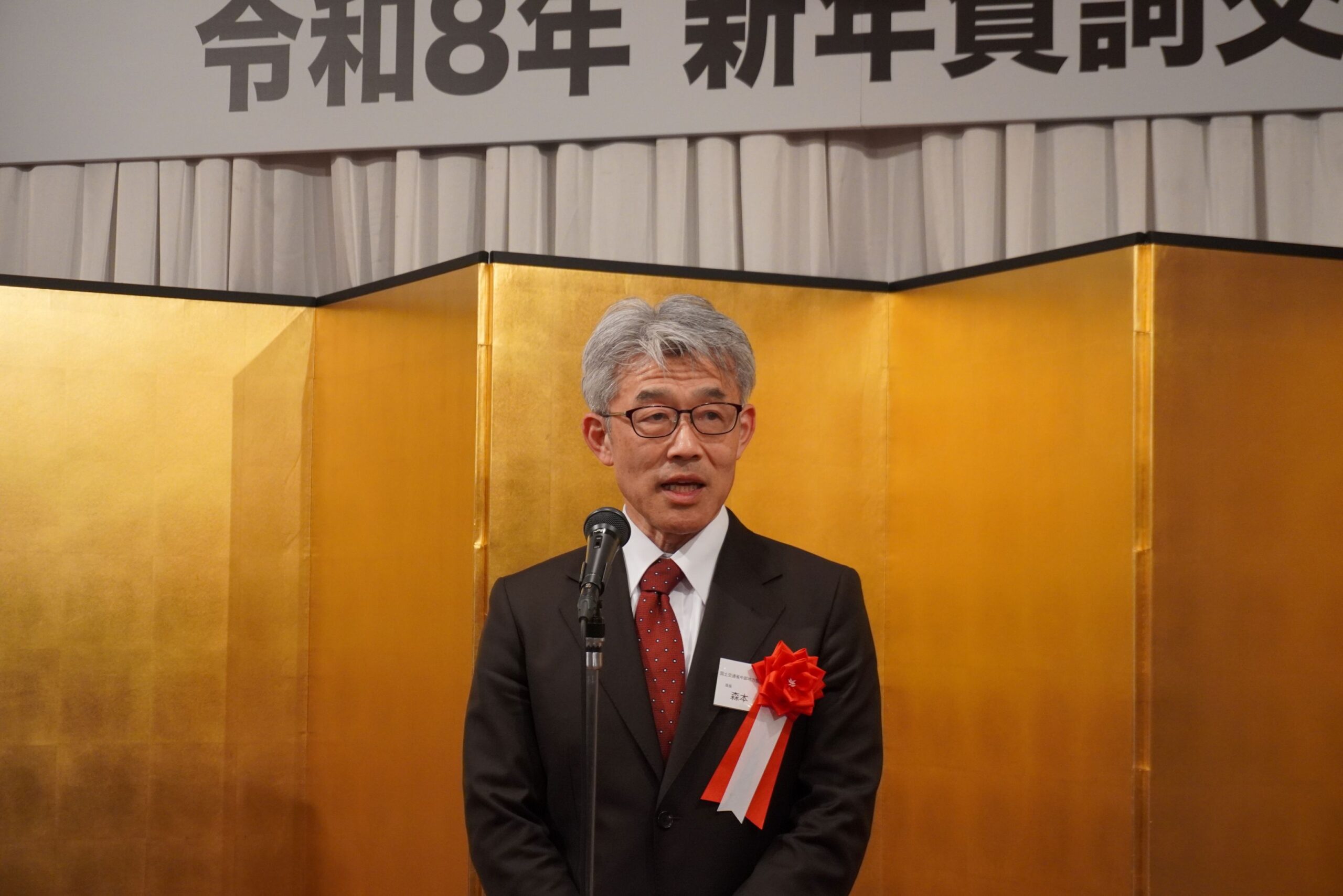来賓として挨拶した中部地方整備局の森本輝局長は、国土交通行政への協力に感謝を述べ、「各種施策や予算確保を通じ良質なインフラを整備し、経済産業の活性化に繋げることで、強く明るい地域の未来を皆さんと創っていく」と力強い挨拶をした。